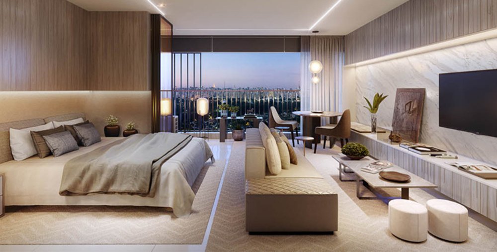 01 quartos com armários com box em vidro, sala , banheiro social com box em vidro, cozinha com armário, estacionamento p/ 01 carros . Apróx. 10m².